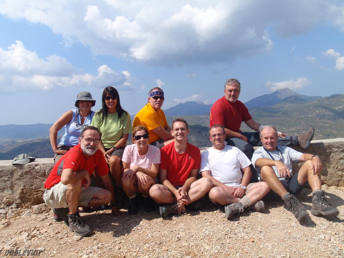 MIRADOR DE N'ALZAMORA en el Puig del Àliga(Fernando Alzamora i Gomà) SERRA DE NA BURGUESA (Antiguement anomanada SERRA DE PORTO PI) Dificultat: F+Circular: Gènova Recorregut: 15,500 Km. 12.09.2009 La Nostra Sra. de la Pau : En l'any 1924, l'urbanista i cap d'Obres Públiques Bernat Calvet va cedir 10.000 metres quadrats de terreny en el cim del puig del Caragol (conegut com Na Burguesa) per a construir el monument dedicat a La nostra Senyora de la Pau. Les obres no es van realitzar, encara que en 1940 es va construir una capella dedicada a l'Immaculat Cor de María .L'actual configuració prové de l'any 1967, de 22 metres d'altura i forma prismàtica.Recentment s'ha instal·lat, com coronamiento, una imatge de la Immaculada Concepció cridada La nostra Senyora de la Pau. l'escultura data de 1985 i és obra de l'artista d'Artà (Mallorca) Joan Ginard Ferrer, anomanat Sarasate (1915-1990). El oratorio actual és un rafal obert, amb coberta de formigó armat, amb un absis tancat per parets convergents que acullen l'altar i una imatge de la Immaculada en el centre. Mirador: Es troba en el cim de l'El Puig de s'Àliga (439 m.). La costrucción és de planta rectangular (8m. X 6m. aproximadament), amb coberta d'una vessant i portal que s'obre a la façana orientada al nord-oest, sobre la vall de Benátiga coronat pel puig del mateix nom de 375 m. Amb expléndidas vista sobre la localitat de Calvià, sa Mola de s'Esclop (928 m.) i el Puig de Galarzó (1027 m.). En el seu interior un banc de pedra que recorre la major part del perímetre. En l'interior, desfigurat, destaquen les restes d'una llar , en l'angle de llevant, i un banc de pedra interior. A principis dels anys 90 del segle passat s'havien de realitzar obres de restauració, però finalment no es van portar a terme. Actualment presenta un estat de ruïna total. ___________________________________________________________________________________________________________ El punt de partida de l'excursió està situat a Gènova, al que podem arribar seguint la carretera Ma.-1044 que passa pels voltants de Són Dureta. Per a evitar que al finalitzar l'excussió hàgim de realitzar un llarg recorregut a peu, convé deixar un cotxe a l'entrada de Gènova, al costat de la desocupada de l'autobús, a la dreta, immediatament després d'haver passat el pont. La resta dels cotxes seguiran pel carrer del Rector Vives (a la dreta) i pujant sempre per mateixa arribarem a la part més alta del caseriu, fins a un punt on una casa duu el nom de És Collet (des de l'inici del recorregut amb cotxe hauran transcorregut uns 6'/7', el que ens ha evitat caminar uns 20' sobre asfalt). És un carrer en la qual hi ha poc lloc per a aparcar, cas que siguin diversos cotxes. Una vegada en aquesta espècie de serral, vam iniciar el recorregut a peu i vam prendre a la dreta del carrer del Rector Vius pel carrer 373 i, de seguida, a l'esquerra pel carrer 374. L'asfalt es converteix en un pis de graveta i, en uns pocs metres més, s'inicia un antic i ampli camí de carro que descendeix suaument i posteriorment planeja internant-nos en un pinar. Als 2' passem per Casa Pedrosa i un mirador (a l'esquerra). Arribem a una bifurcació (amb dos pals metàl·lics) i hem de prendre el camí de l'esquerra amb lleuger descens al principi, després planeja i posteriorment petites pujades i baixades. Als 09' el camí s'acaba, així que seguim de front per una senda (no a la dreta pujant) i amb suaus pujades i baixades, anem vorejant un parell de tàlvegs, transcorrent per un pinar. Aproximadament als 15'/20' de Casa Pedrosa (depèn de la velocitat de la marxa) arribem a una espècie de rosseguera, la travessem i planejant vam arribar en uns 3' a les restes d'una caseta de pedra (dreta). Fins a aquest punt l'excursió tot just a presentat desnivells importants, planejant la major part del camí . A la dreta de les ruïnes s'inicia un camí que ascendeix pel vessant dret del tàlveg, amb el pis molt deteriorat pel vessament de l'aigua, presentant un ferm amb nombroses pedres i solcs profunds; el pendent és fort. Als 7' el pendent se suavitza i en alguns trams el camí s'estreny a causa de la vegetació que ho envaïx. Pugem durant uns 18'/20' amb pendents mitjos (en alguns trams la vegetació envaïx el camí) i posteriorment el camí té pendents lleugers o planeja durant uns 10'/12'. De nou el pendent és mitja/forta, al principi, durant uns 5' i després s'incrementa el pendent i al cap de 5', vam arribar a un encreuament (Camí de Bendinat). Des que hem iniciat l'ascens a la dreta de les ruïnes el temps transcorregut ha estat de l'ordre de 45'/50'. En aquest encreuament prenem a la dreta (NW) i llaneando vam arribar, llaneando o amb pendent lleuger, en uns 1'/2' a una barrera de fusta i un panell d'informació (esquerra). Als 4´ veurem un camí a l'esquerra, i seguirem recte i al cap d'uns 3' de nou altre camí a l'esquerra (arribarem per ell al regressar), seguirem recte i al cap de 1' arribarem al Coll des Pastors, on trobarem un triple encreuament de camins. En el Coll des Pastors, per l'esquerra (NE) baixa un camí, a la dreta (Es) aniríem al monument i restaurant de Na Burgesa (al regressar discorrerem per ell), i ara seguim de front (N), pujant per una àmplia pista amb pendent mitjana/lleugera, arribant en 5' a un serral on vam iniciar un descens durant 7'/8' llaneando o amb pendent mitjana/lleugera i uns 4' després de baixada lleugera arribem a un encreuament. En aquest punt prenem a l'esquerra (W) per la dreta arribaríem al Coll de Sa Creu, en la carretera de Ma.-1043 de Palma a Calviá-. El camí planeja i amb pendents lleugers ens situa al cap d'uns 3' davant un nou encreuament (camí des de l'esquerra) i seguim recte; planejant al cap d'uns 7' veiem un forn de calç a la dreta i, al principi amb pujada lleugera, després mitja, posteriorment plenajant, vam arribar al cap d'uns 12'/13' a un encreuament (camí des de l'esquerra, amb fita). Seguim recte (W) i de